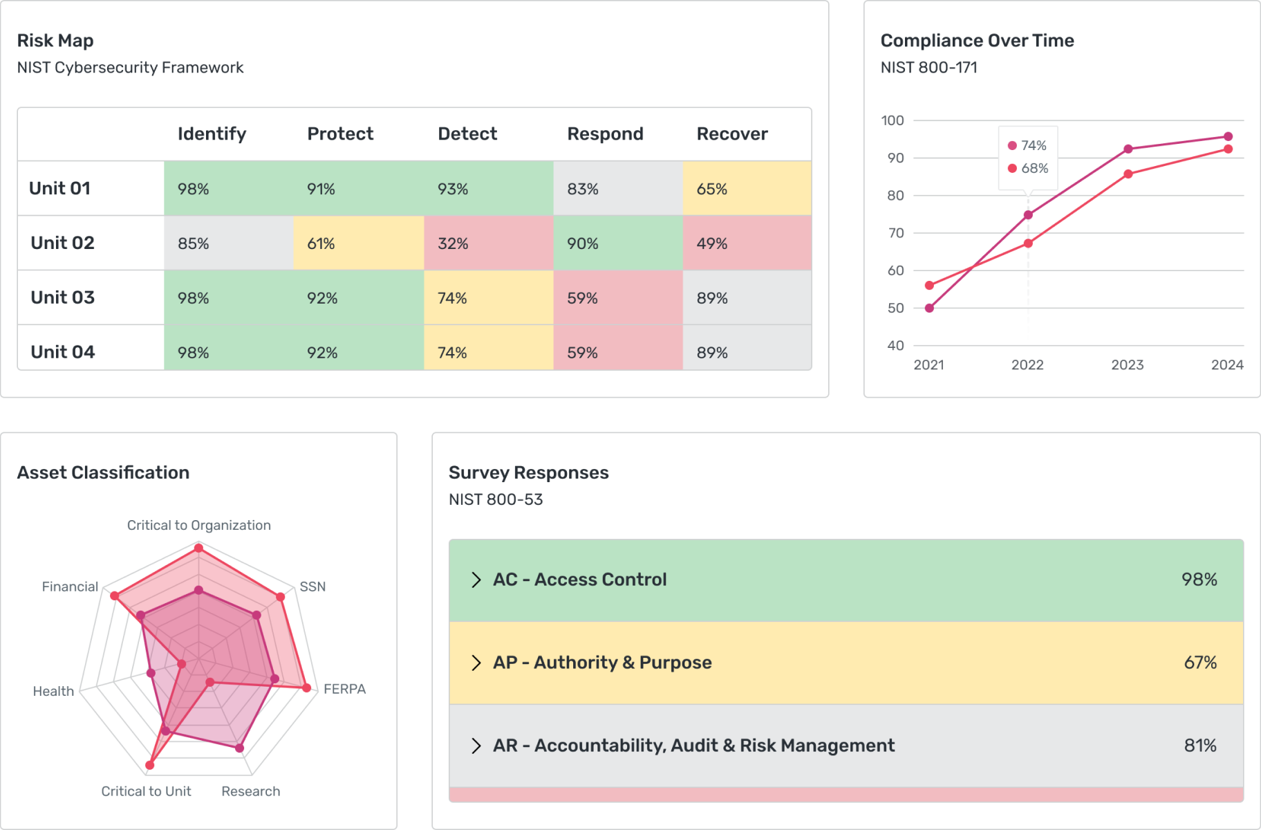 Visibility helps you prioritize your efforts, helping you identify gaps, mitigate risk, and mature your information security, privacy, or compliance program.
