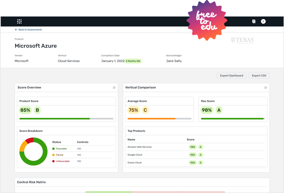Identify critical risks, compare vendor scores, and inform your procurement process.
